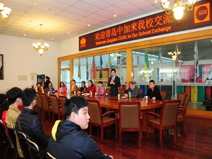 2015年3月2日,我校喜迎青岛中加学校14名教师和13名学生,师生一行27人将在我校进行为期9周的学习交流活动。我校领导高度重视,于当天上午在综合楼会议室举行了欢迎仪式,执行董事Andy Truong 先生、执行校长薛梅女士、加方校长Josephine Osadec女士、副校长荆枝女士、华仁学校校长张群女士及王战英主任、张卫红主任出席了仪式,对青岛中加学校师生的到来表示了热烈的欢迎。