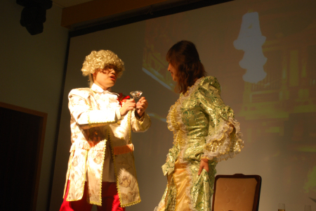 "达尔杜弗"的虚伪与贪婪,"王利发"的谨小慎微与圆滑,"马洪瀚"的固执与无奈……舞台上一张张原本青春洋溢的面孔此时稚嫩不再,取而代之的是沉浸于话剧角色的投入与忘我。2011年10月31日至11月1日,2010级高二话剧表演考试在北京中加学校的阶梯教室内隆重进行。执行校长薛梅女士、姜涛校长及各部门主任亲临现场,对学生们精彩的表演和有序的组织予以了极高的评价。