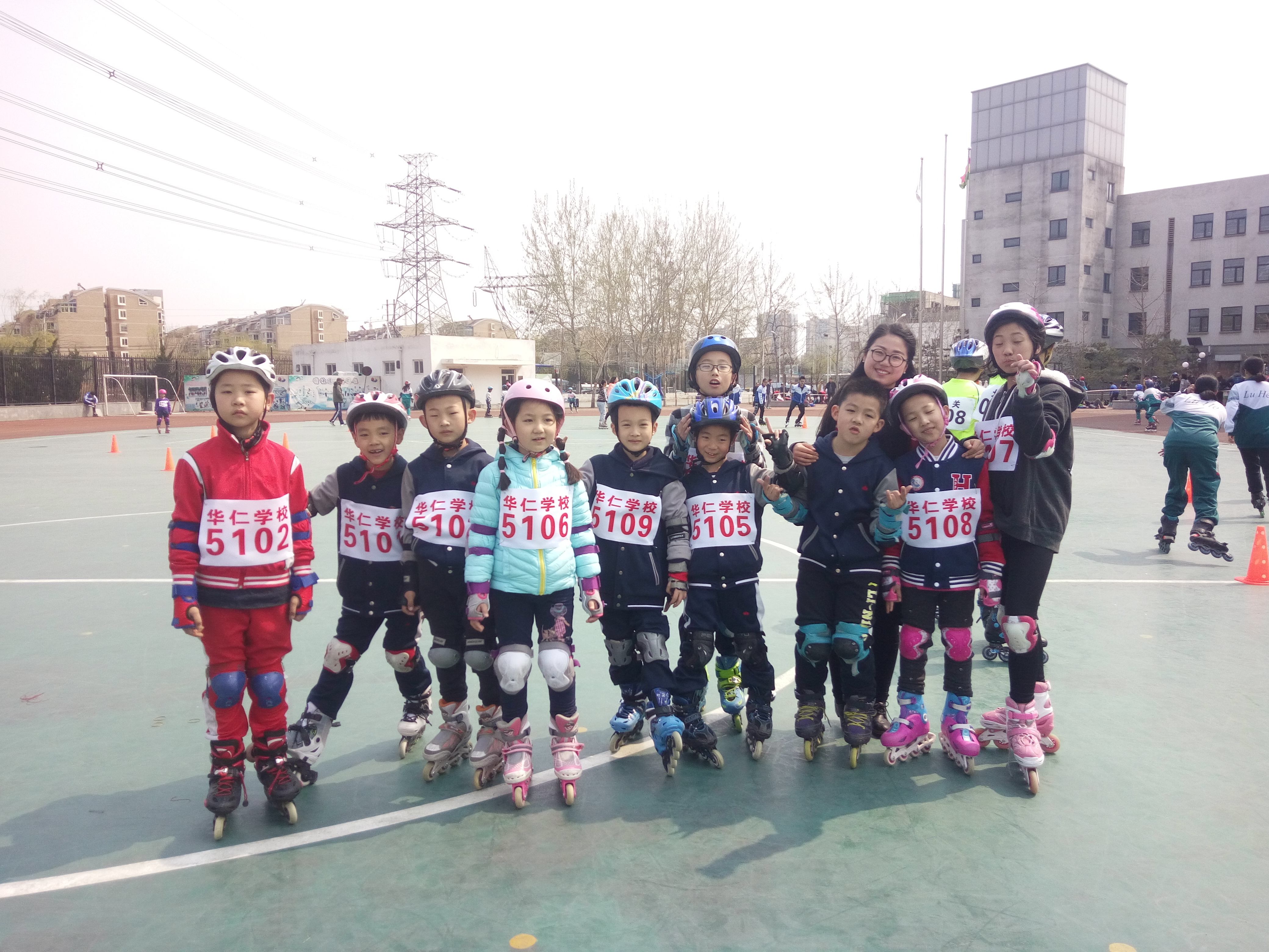 3月25日下午,北京中加华仁学校很荣幸的第一次参加了2017年北京市通州区教委举办的北京市通州区中小学生轮滑比赛。本次比赛我校由小学部大队辅导员张双带队、校本课程轮滑教师何心担任教练,以及10名爱好轮滑的小学生组成了一支华仁学校新生轮滑队。为了本次比赛,何老师带着学生们每天利用午休的一个小时紧急进行了近3个星期的艰苦训练,在克服了天气、场地、时间等种种困难后,带着对轮滑的热爱之情积极参与了本次比赛。