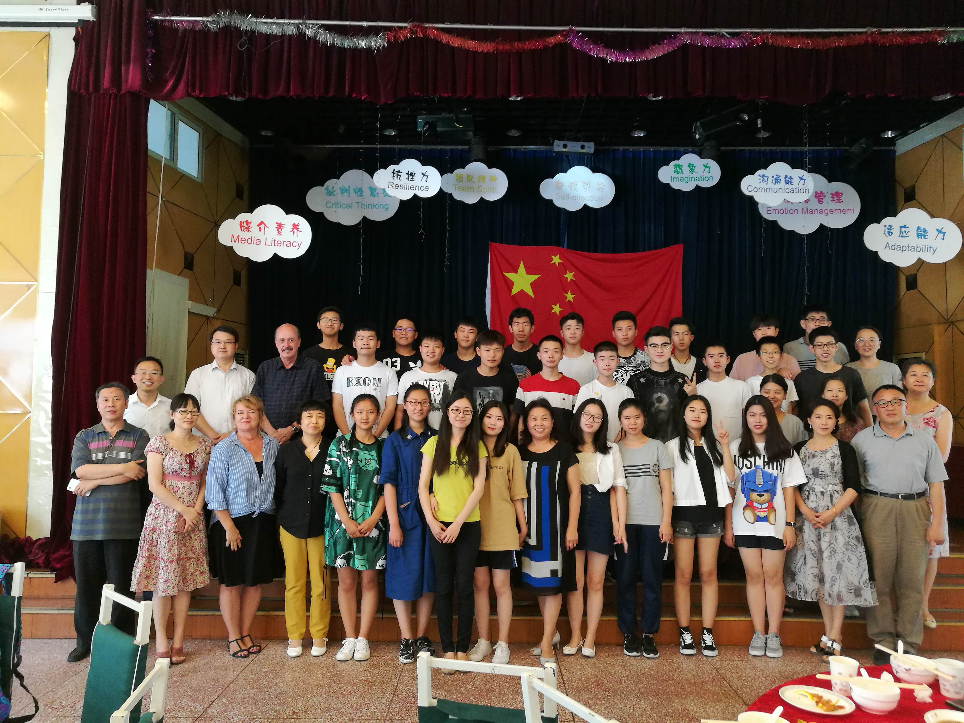 2017年7月7日,我校校领导和初三毕业生欢聚在教工餐厅共进午餐。加方校长Mr.Thom Sunega寄语毕业生,“只要同学们坚持将来的发展,一定会如意、顺意、得意”,并期望同学们要“善于阅读、善于学习,不要放弃任何努力的机会。”