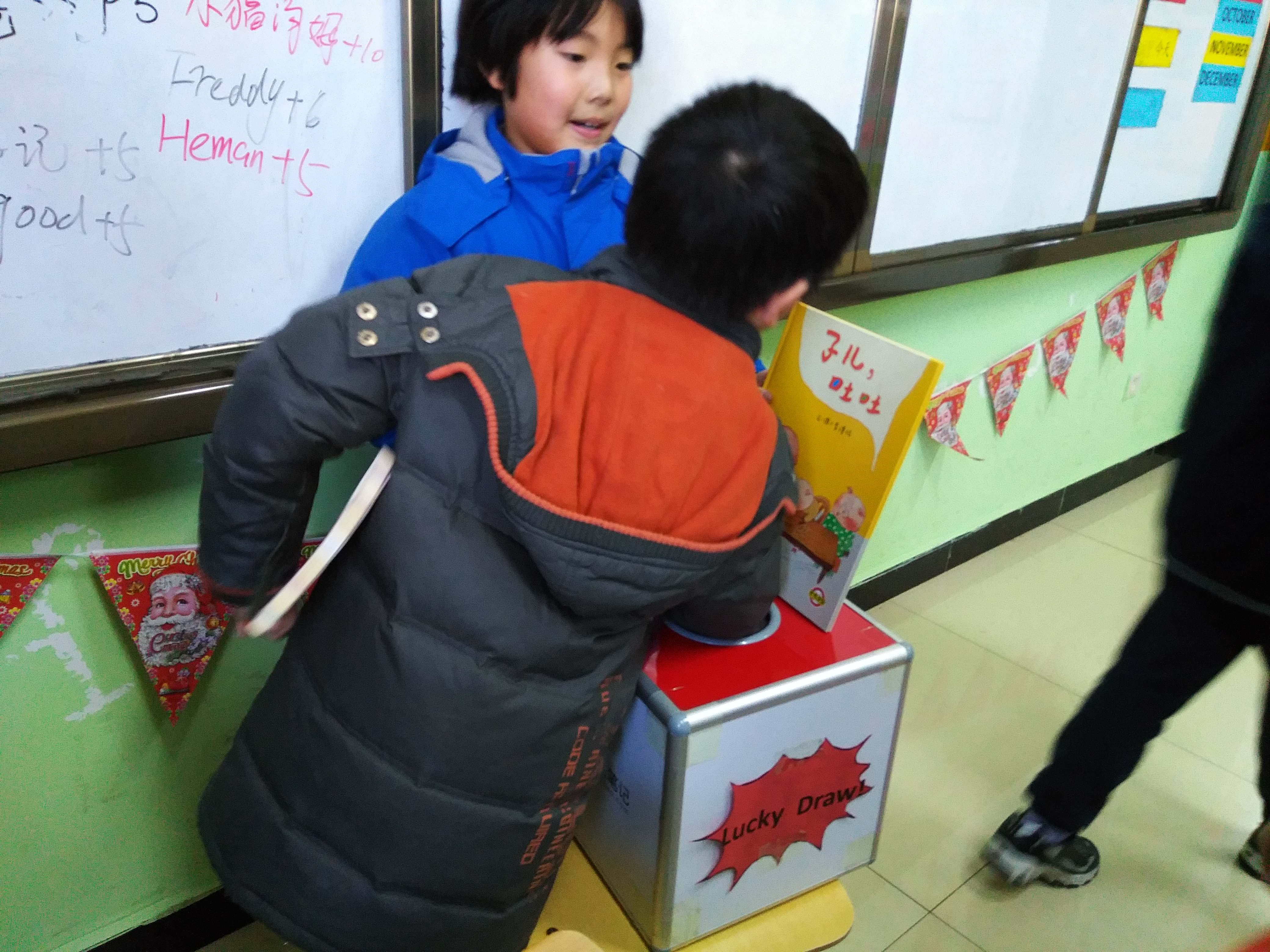 为了提高“销售业绩”,师生共同努力用各种各样的方式促销,有的家长送来了氦气罐和气球,购买书籍可以赠送气球;有的班设立了抽奖箱,购书可以抽奖获取小礼品;有的班请来了小小机器人,放音乐、答问题吸引顾客;还的班请来了高年级的同学做“账房先生”。校园里推销声、叫卖声、欢笑声,好一片热闹景象。