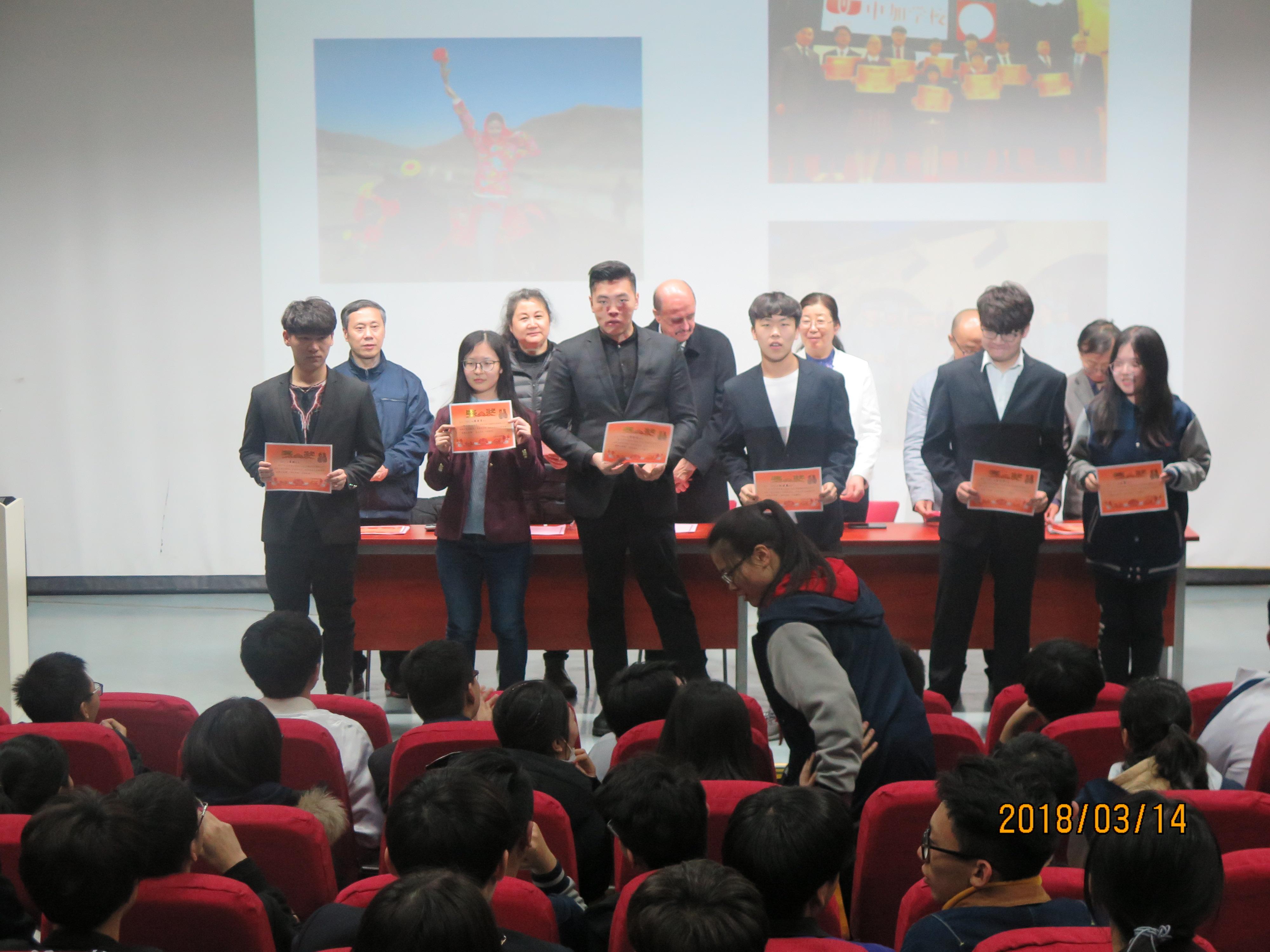 2018年3月在我校阶梯教室隆重举行2017-2018学年度第一学期第二阶段初高中表彰大会,对上学期的先进、进步、文明、优秀小导师、安全员、电教员及学科优秀学生进行表彰。获奖同学面带喜悦和激动的心情上台领奖。本次表彰大会对获奖同学而言,是对其刻苦努力,勤学奋进的嘉奖;对其他同学而言,是对其以后的学习给予了很大鼓舞和鞭策,在很大程度上,促进了我校争先创优,勤学奋进优良学风的形成,让更多的学生从中受益。