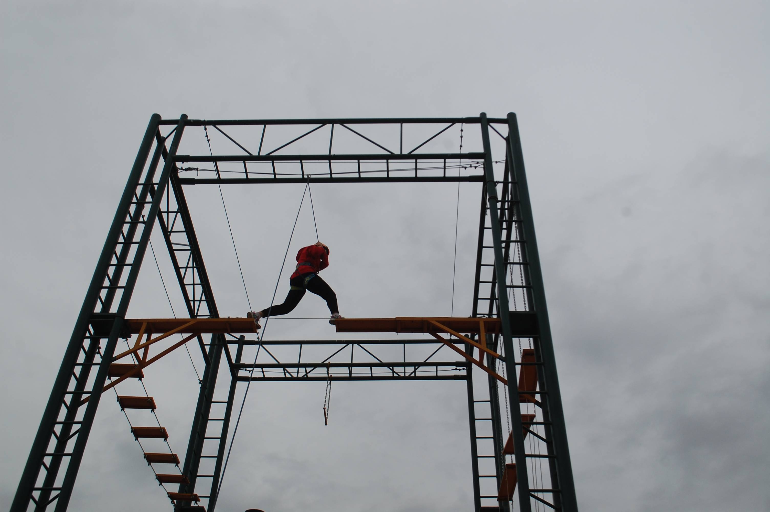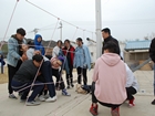 第二天初二年级、高二年级全体师生前往北京市昌平长陵拓展基地参加拓展活动。同学们在教官的带领下,其中三班和一班率先来到了一处由间断木板与两根高柱组成的建筑物下,这个活动有个很形象的名字——“高空断桥”。活动规则很简单:绑好安全绳,系好安全帽,从柱子下沿扶手爬上高达八米的断桥并跨过去,断桥中间相隔接近一米。同学们带着好奇、兴奋、恐惧、挑战等复杂的心情一个接一个完成了挑战,虽然有眼泪和尖叫,更多的却是鼓励、喝彩。完成任务后,教官教导同学们,这个活动既是一种突破自我的挑战,也是教给大家在人生道路上遇到险阻,不要惊慌失措,要勇敢面对,坚强克服的道理,同时大家也深深明白,每一个人的成功都离不开同伴的鼓励与陪伴。与此同时,二班四班和五班在完成另外的一组活动任务,活动的名字叫做《交通堵塞》。教官在介绍完规则后,同学们开始分组解决堵塞问题,有的小组一开始,每一种想法都不成功,于是尝试用纸折成小方块儿来模拟,几经周折却始终无果。有的小组却在组长的指挥下通过三番五次的实践很快找到了成功的方法,但一开始配合时也出现各种可笑的问题。在完成第一阶段的任务后,教官说不允许同学们说话,并且不能有任何指挥队员,活动难度升级。可是通过团队成员们的再三的努力,大家很快无声的、高质量的,非常默契地成功的完成了这项任务。结束后,同学们一起欢呼、鼓掌,这是大家团结合作的结果,是每一个队员不懈努力的结果。最后,教官在引导同学们总结游戏经验时,队员们表示,自己平时和大家缺乏更多的沟通和了解,协作意识还须加强,而沟通协作是一个团队完成一个任务的重要核心!