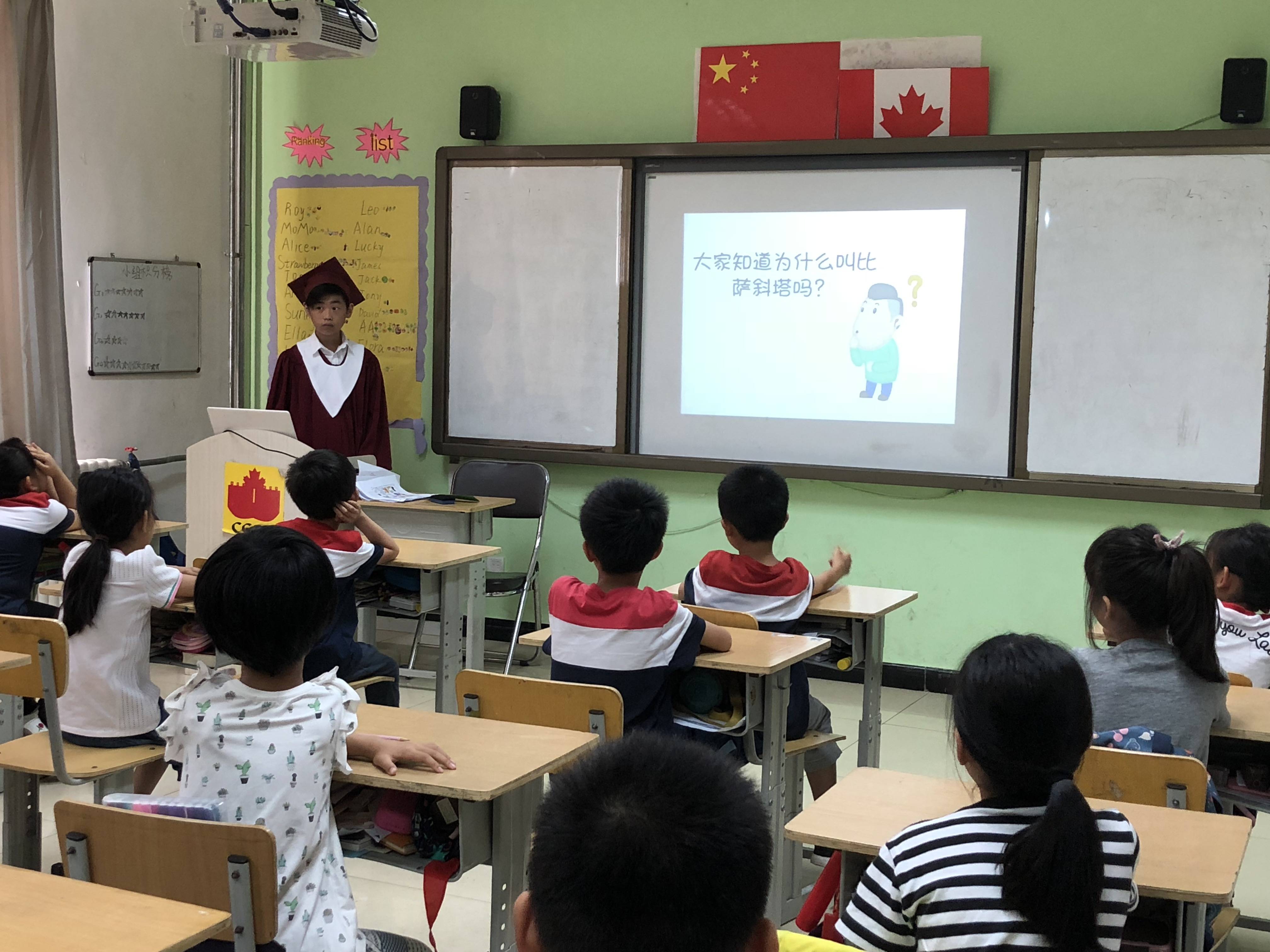 孩子们制作了说明卡片,完成了PPT讲稿,并深入每个班,给学弟学妹讲世界著名建筑的故事,带学弟学妹环游世界。低年级的孩子也为毕业班学长准备了送别仪式和送别礼物。在这个体验和互动活动中,六年级孩子获得能力锻炼,低年级孩子收获知识,各有所得。