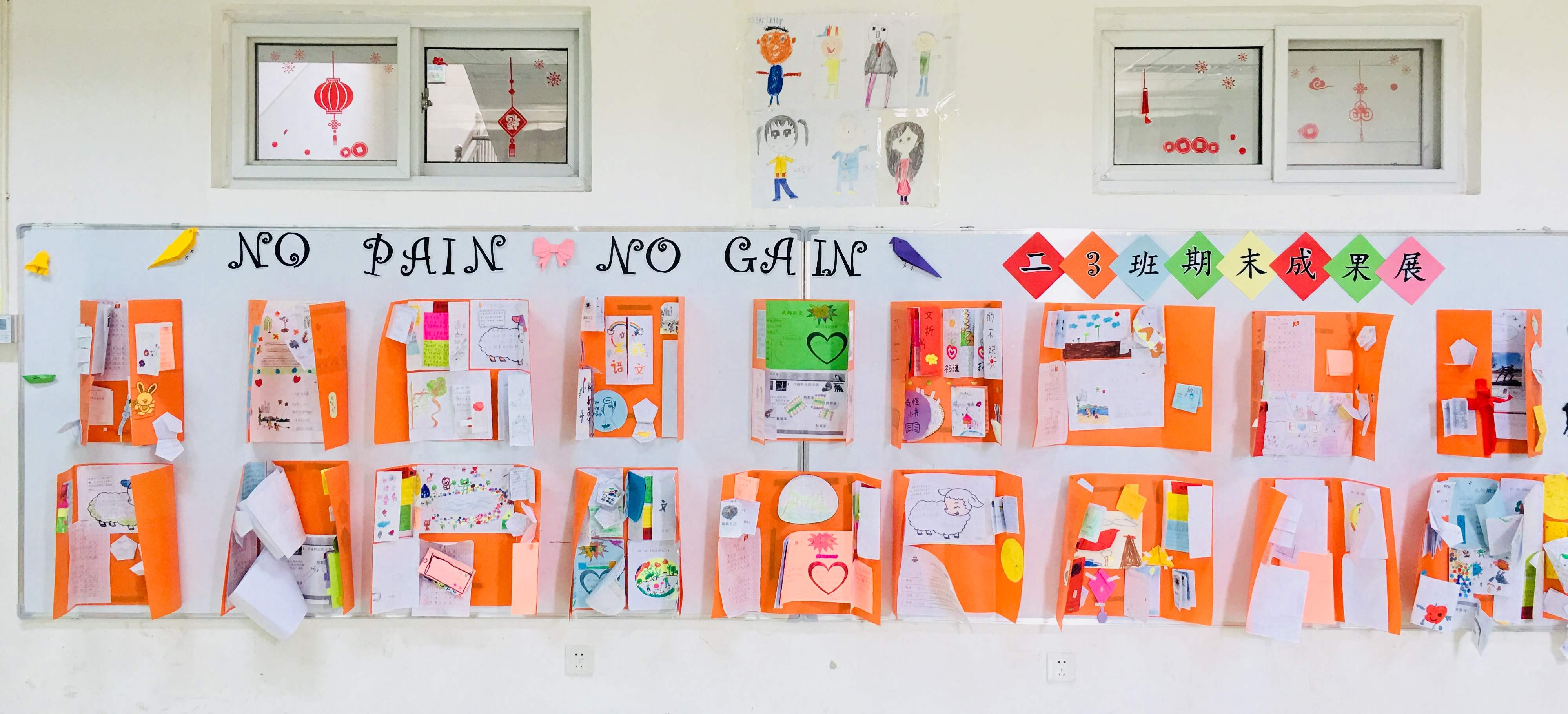更为特别的是,每个班侧面的磁性板都变成了“特别展示区”,统一展出本学期华仁小学部全员参与制作的三折板。