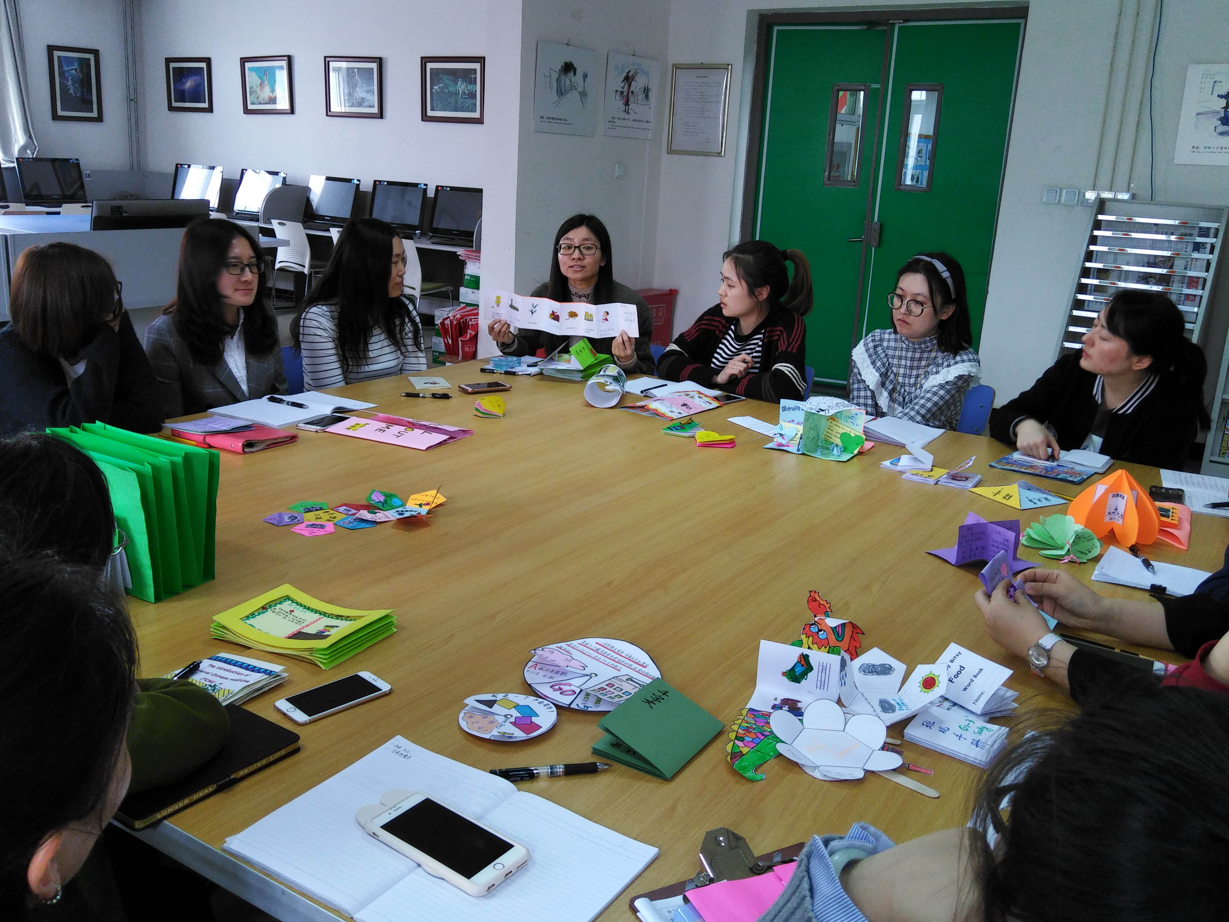 教师在日常的教学活动、社会实践活动以及期末复习中,结合具体的制作内容教给学生们具体的制作方法。日积月累,才有了这次展卖活动中琳琅满目的折叠书。