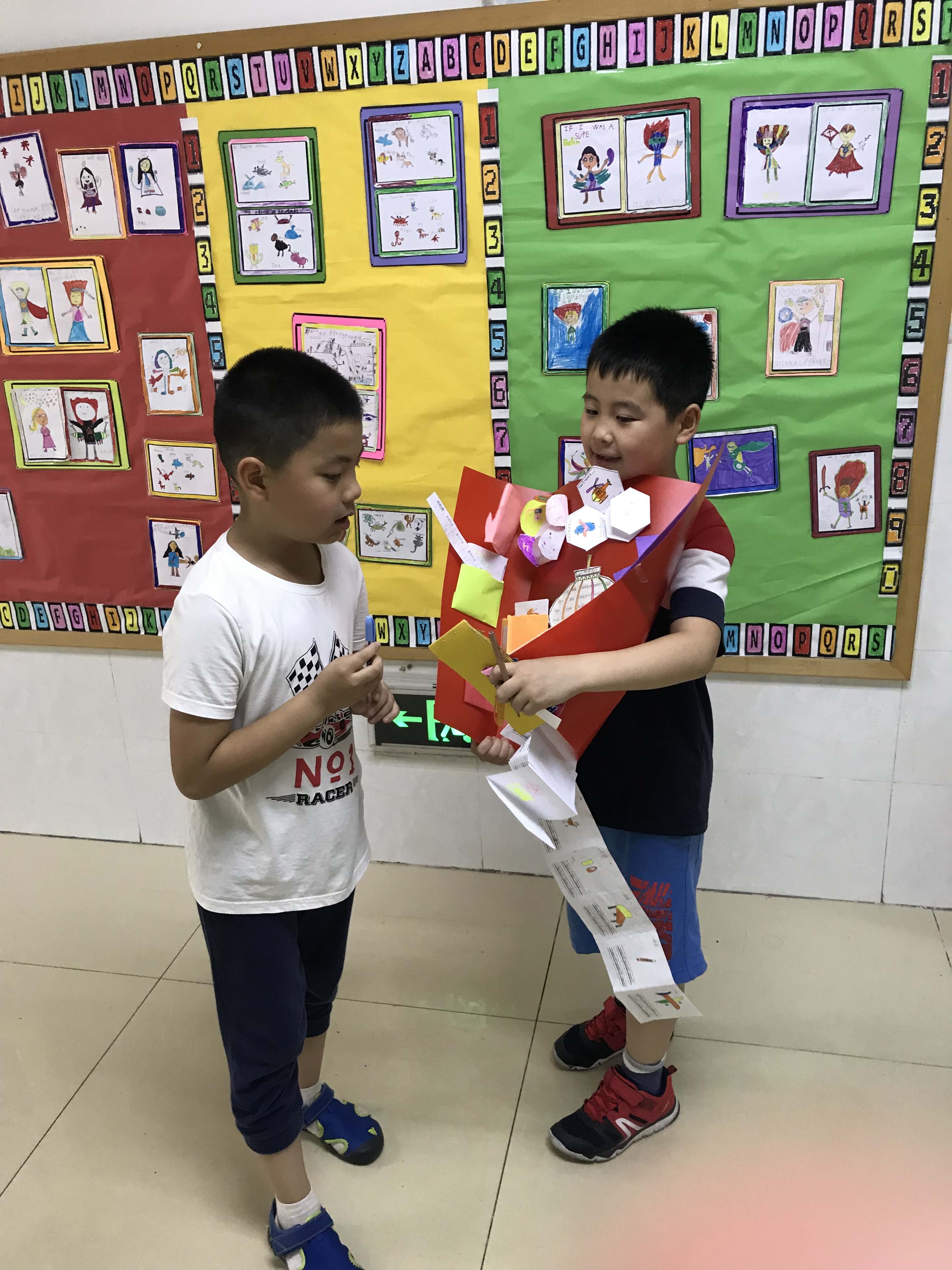冰心说:“读书好,多读书,读好书”,小学生自制的各种折叠书你见过吗?7月4日下午,一场别开生面的展卖活动在北京通州华仁学校小学部如火如荼举行。小学部各班师生全员参与,利用午休时间将自己的教室精心“改制”,变成了一个又一个的大卖场。卖场里展卖的,不仅有这一学期大家自制的各种手工折叠书,还有精美的自制书签、颇见功力的书法绘画作品、充满创意的手工作品等。