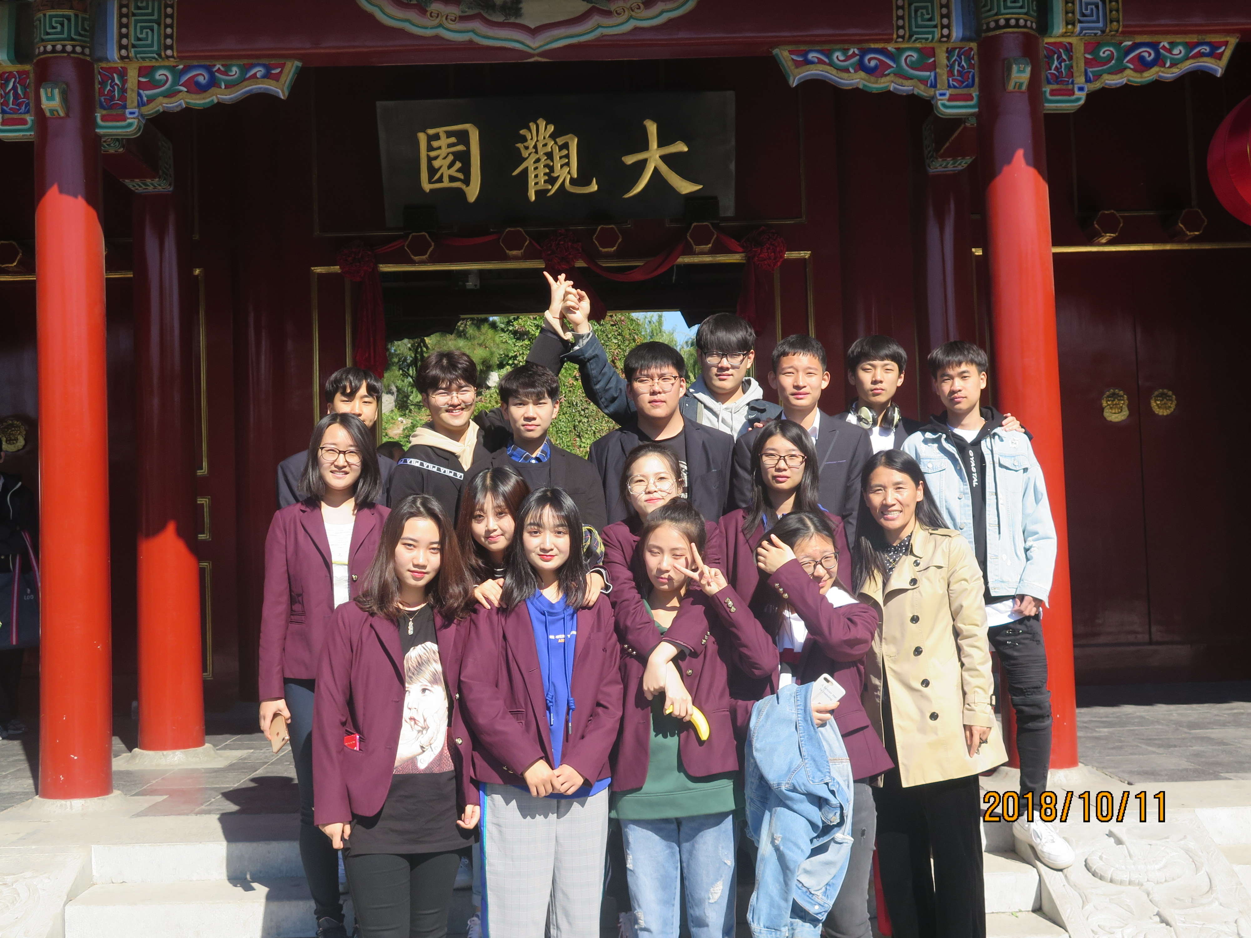 2018年10月11日,为了配合语文《红楼梦》阅读与鉴赏模块的教学要求,北京中加学校组织高三年级全体同学走进大观园,开展了以“阅读经典,品味红楼”为主题的研学活动。