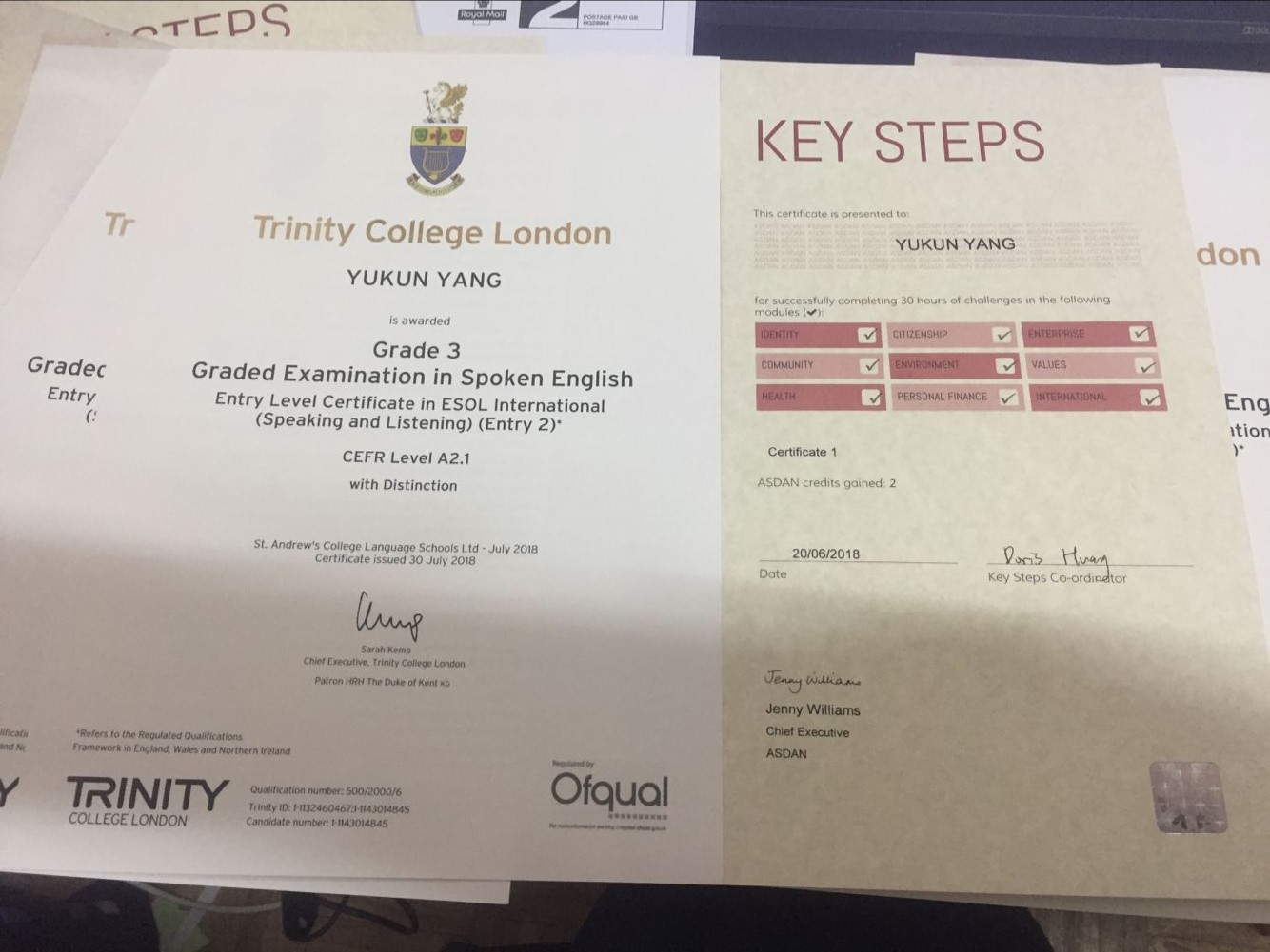 18年暑期,10位同学在ASDAN Key Steps关键成长国际项目中表现优异,获得相应的英国素质教育活动证书,证实了各位同学在基于个人意识、健康意识、社区影响、公民意识、环境保护、个人理财、企业管理、价值观,和国际文化9大模块设计的国际活动中优异的活动表现。