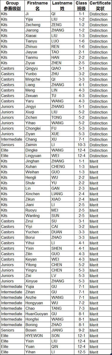 祝贺北京中加华仁学校同学在英国海狸运算思维挑战赛中取得优异成绩