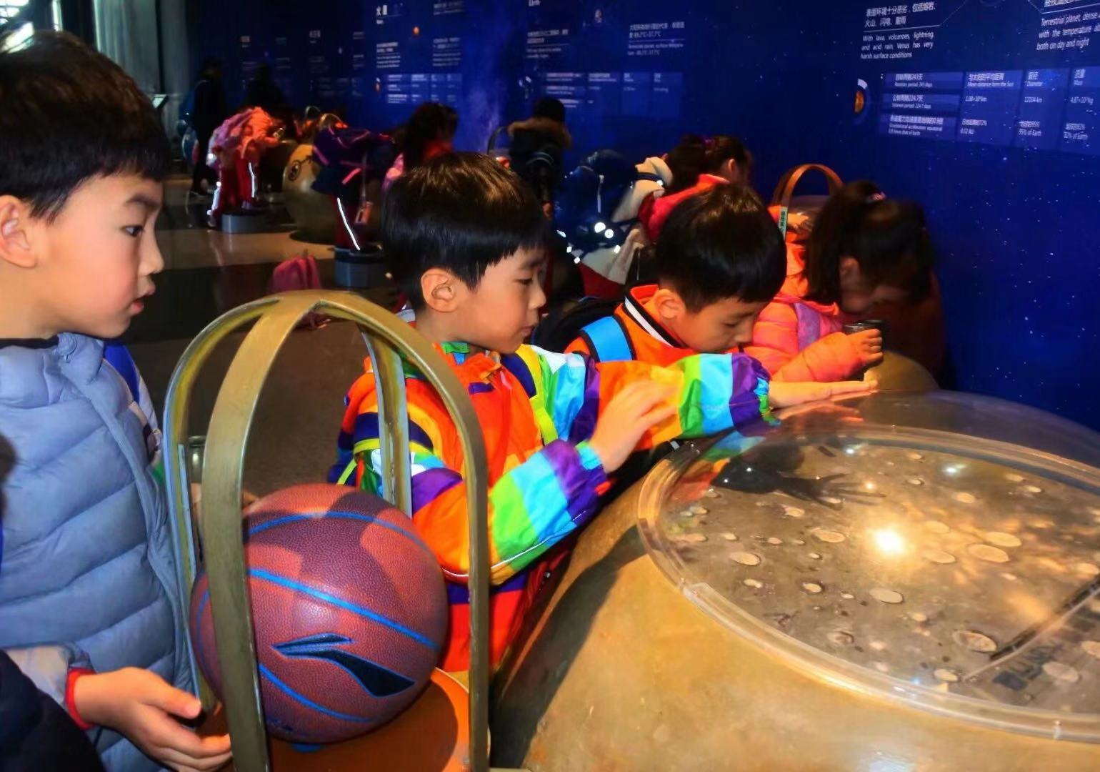 近日,北京通州华仁学校小学部一年级全体师生来到北京天文馆,学习天文科学知识,探秘神奇宇宙。同学们动手体验“宇宙尺度”,了解人类认识宇宙的深度。然后走出太阳系,开启寻找“系外行星”的旅程。通过“引力透镜”,欣赏宇宙汇总神奇的天体变形像。在最具神秘色彩的黑洞附近体验“逃离黑洞”的乐趣。转动转盘,观赏和了解层级式的“天体系统”。最后,进行“时空穿梭”,实现穿梭宇宙的梦想。