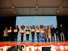 首先,董事长彭建华博士致贺词,代表学校向到会的领导、嘉宾表示最热烈的欢迎,向为学校发展付出艰辛努力的老师表示最崇高的敬意,彭建华博士欣慰的就是中加学子考上向往的大学,极赋竞争力,信心满满地走上社会,成为世界公民,为人类文明和发展做出贡献。其次董事长彭建华博士、执行董事Andy Truong先生与校庆二十二周年LOGO设计中标的设计者五年级(3)班秦楚楚同学共同揭牌,并颁发了奖状。并值得庆贺的是董事长彭建华博士获得加拿大最高荣誉——加拿大总督功勋奖,加拿大总督功勋奖是加拿大对有杰出贡献的人颁发的国家荣誉奖项。此奖项由国会加拿大总督代表加拿大女王颁发,颁发给各领域人士致力于创造美好世界的加拿大人和非加拿大人。