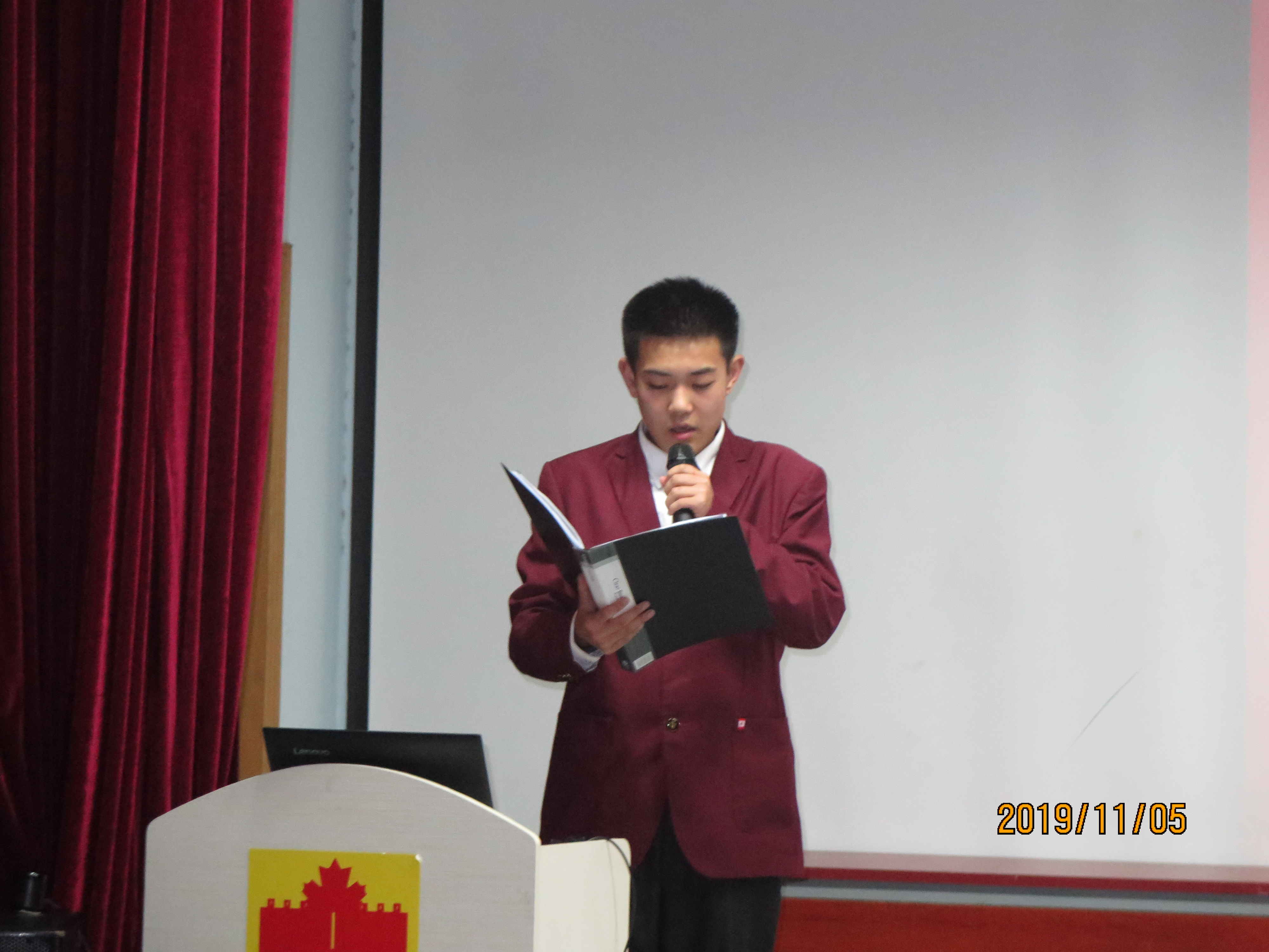 最后执行校长田振周先生发表讲话,希望当选的学生干部能够“在其位,谋其政,担其责”,不断创新,用行动来为中加添彩。