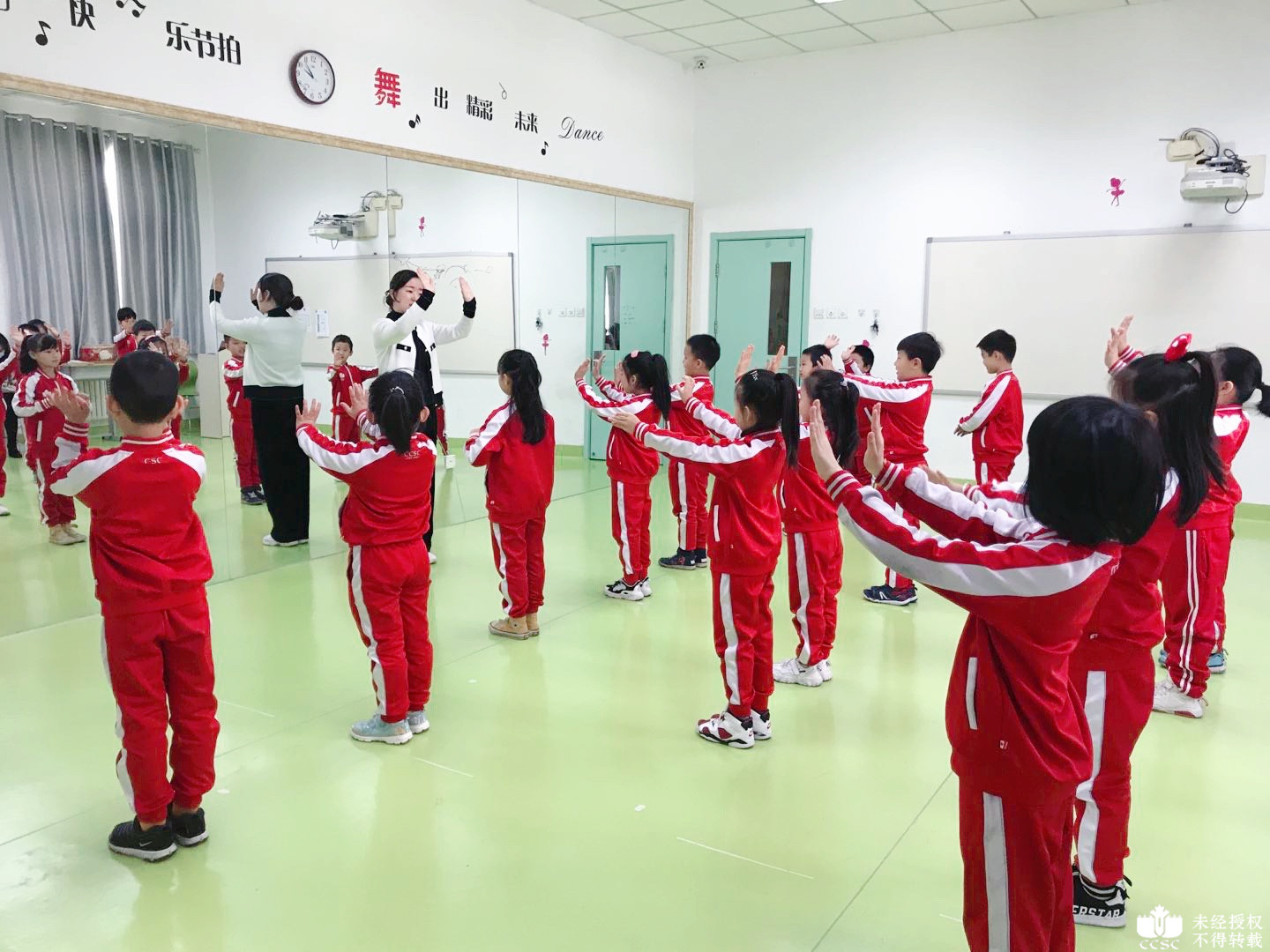 体育组张奕敏老师教学生学跳苏格兰舞,孩子们体会到舞蹈家的艰辛。