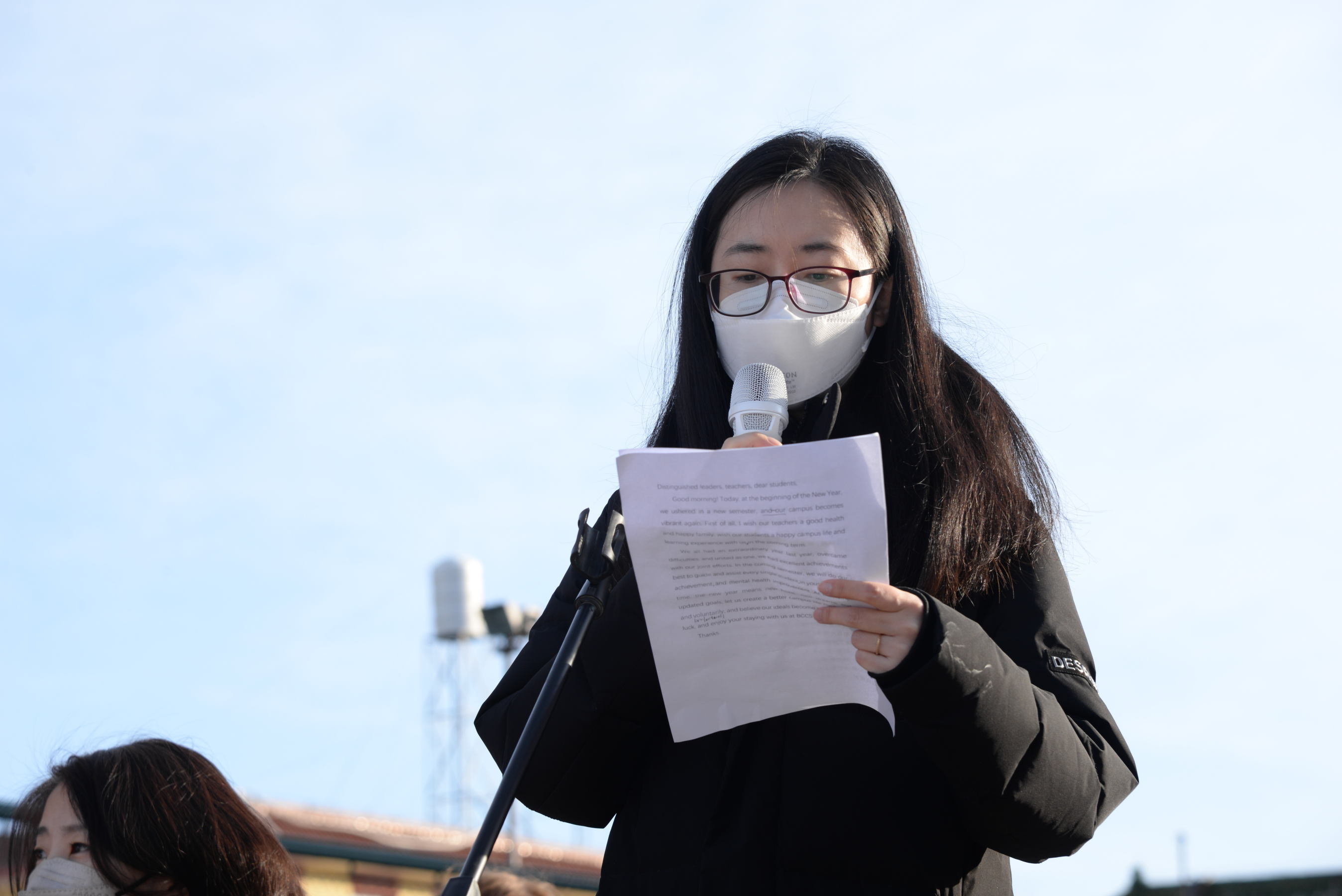 马戈副校长公布了2022-2023学年第一学期长城枫叶奖获奖名单,校领导为获奖的同学们颁奖。
