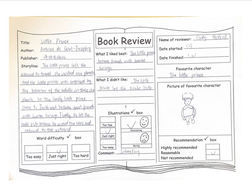 同学们选择自己喜欢的英文读物,阅读并完成读书报告,将阅读融入寒假生活中。