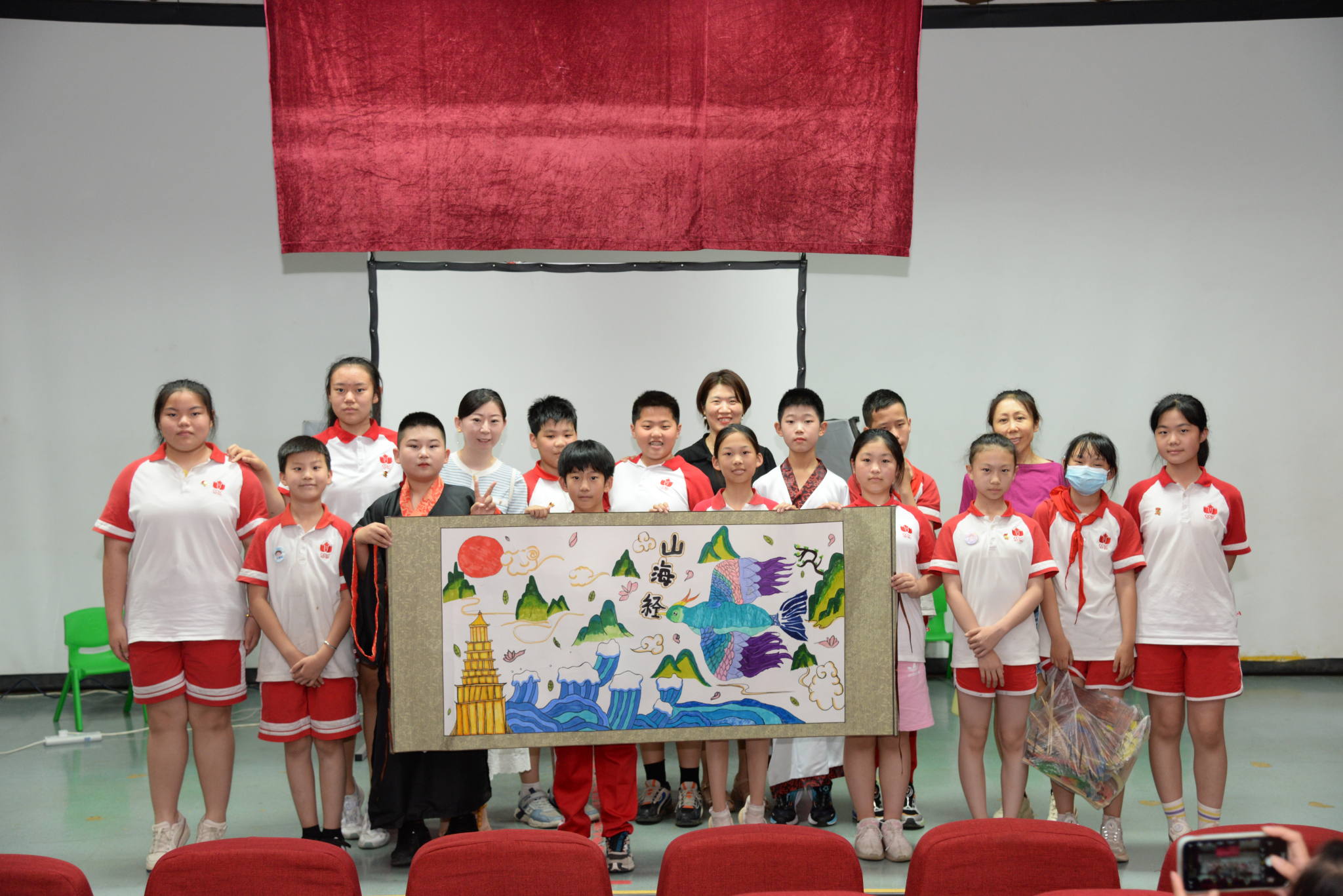 听着同学们介绍着《山海经》,欣赏着他们精心绘制的两幅卷轴画,看着那画上栩栩如生的鲲鹏,炫彩奇妙的白鹿,仿佛让我们置身于海外仙山中,与它们一同进入那神奇的画卷。读《山海经》帮助我们扩宽视野,增加想象力,了解古代的神话,感受中华文化的魅力。