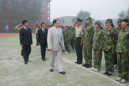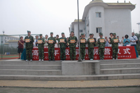 2008年8月29日上午8:30—9:10,2008级新生军训汇报表演暨闭营式在学校操场东看台隆重举行。出席本次军训汇报演出的学校领导有:董事长彭建华博士、执行董事兼行政主管Andy Truong先生、执行校长孟学军先生、党支部副书记兼校办主任荆枝女士、加方副校长Colin先生、学生处主管副校长田振周先生、教学总监薛梅女士、总务处主管副校长刘晋先生、北京武警总队有关领导等。参加本次汇报表演的还有在校的各位主任、全体加方教师、高一教师以及学生家长。