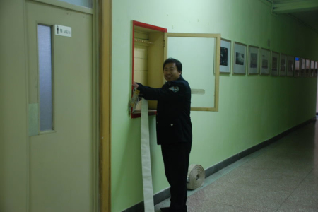 演习铃声响过后,全体师生(1400多人)迅速离开自己的宿舍,从各楼梯和楼层的紧急出口紧张而有序地疏散到操场。师生们从不同的宿舍区到操场集合完毕用时4分45秒,其中最快的师生到达操场的时间仅用了不到两分钟。整个演习迅速有序,没有出现师生受伤情况,非常成功,达到了预期的目的。为了搞好这次演习,学校专门召开会议进行多次研究,成立了指挥部,并对演习预案多次进行研究和修改。整个演习设置了疏散引导组、医疗救护组、灭火救灾组和通讯联络组,同时分别召开教职员工和全校学生大会进行了动员。整个演习组织细致、严密。演习中为了达到真实和实战效果,灭火组动用了消防水带和灭火器,而医疗救护组则使用了担架和轮椅等救护装备。