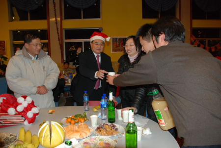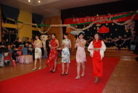 2008年12月23日晚,北京中加学校近300名中外教职工在教工餐厅举办了迎圣诞庆新年联欢晚会。
