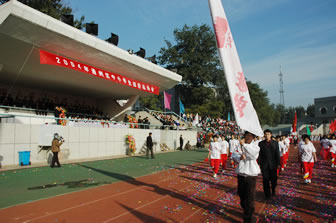 2004年10月15日(星期五)上午8:00,2004年通州区中小学田径运动会在通州区潞河中学召开,我校35名入场式同学以及20名运动员,由学生处主管田振周校长以及学生处工作人员带队,参加了开幕式并表演了“太极扇”的舞蹈节目,得到参会通州区领导的好评。本次活动由体育组具体安排,高一年级5班、6班的同学经过一周的辛勤排练,他们娴熟的动作、饱满的精神赢得了观众的阵阵掌声。